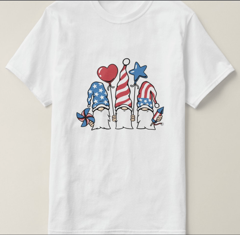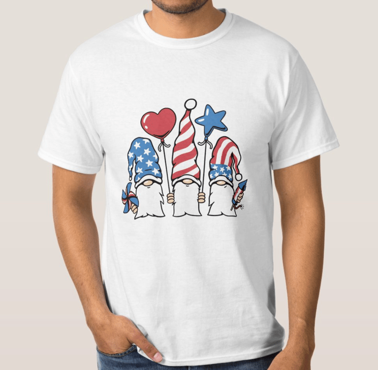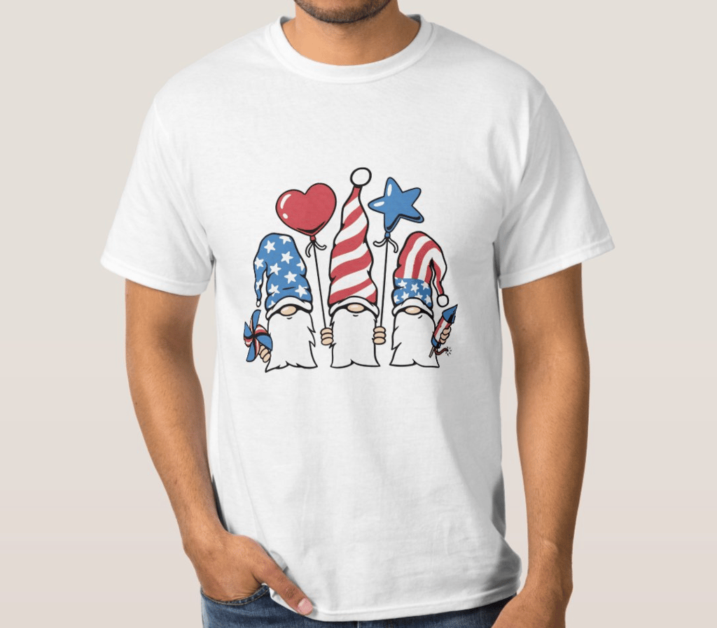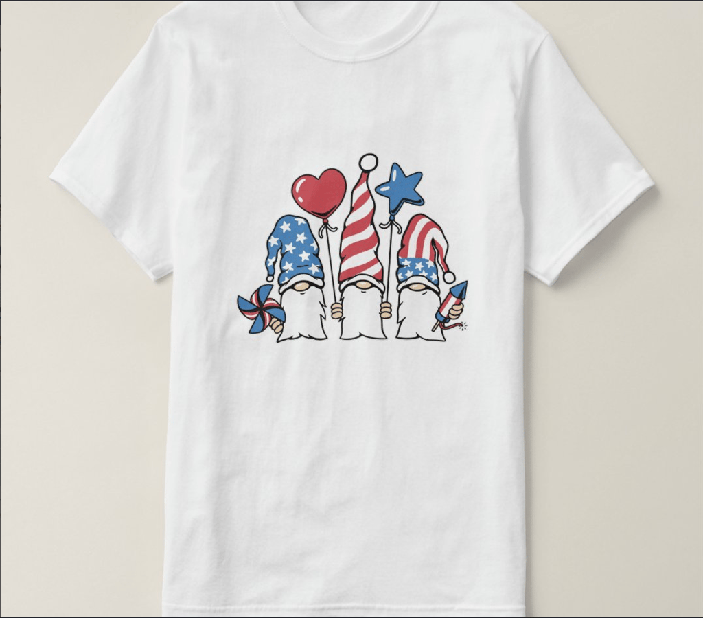 Celebrate Independence Day with a touch of whimsy and charm with our "Patriotic Gnome Parade" tee! Featuring three adorable gnomes donning oversized American flag hats and holding festive patriotic balloons, this shirt brings a playful spirit to your 4th of July festivities. Perfect for barbecues, fireworks shows, or any patriotic gathering, this design is sure to spread smiles and patriotic cheer. Join the gnome parade and make your 4th of July extra magical!