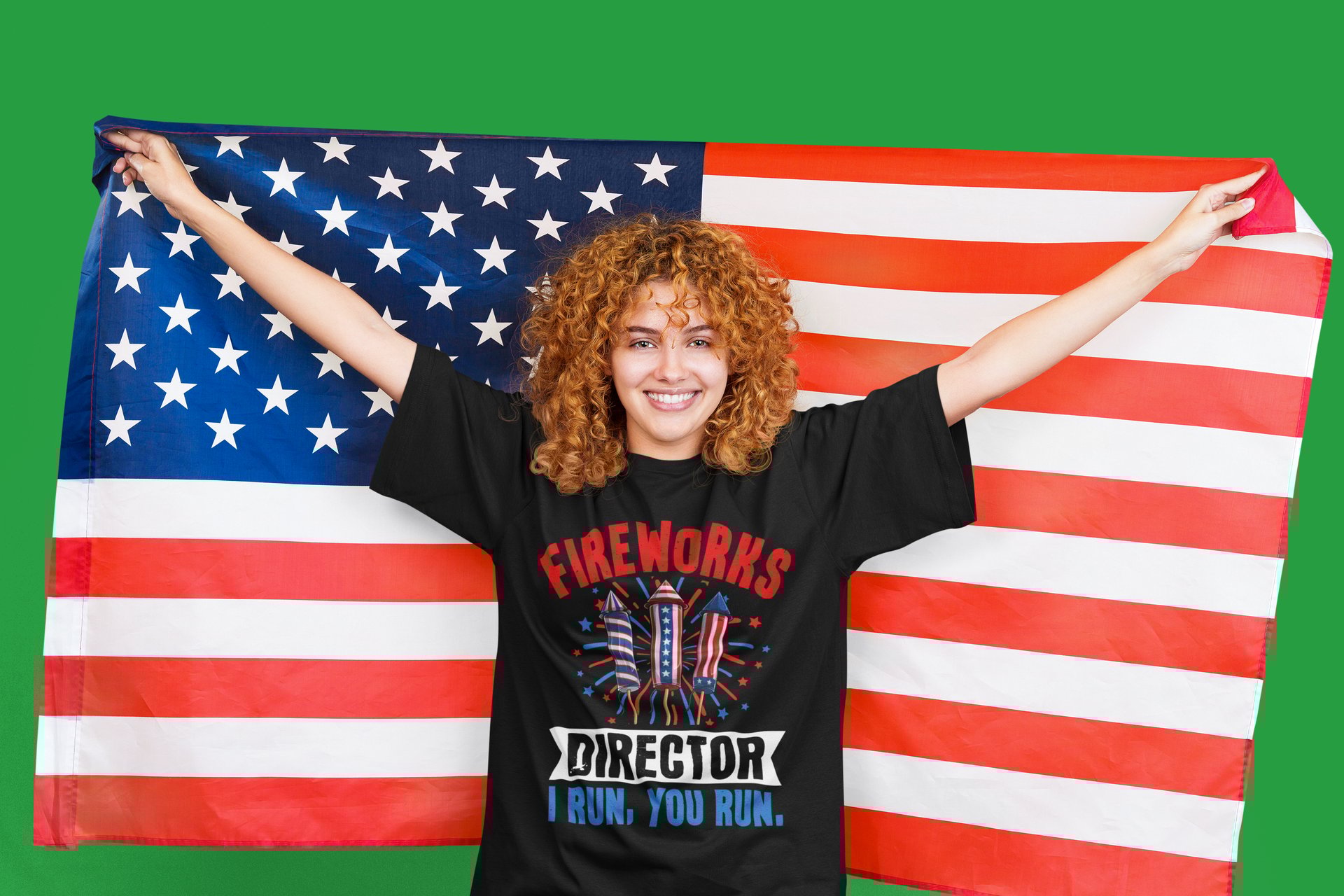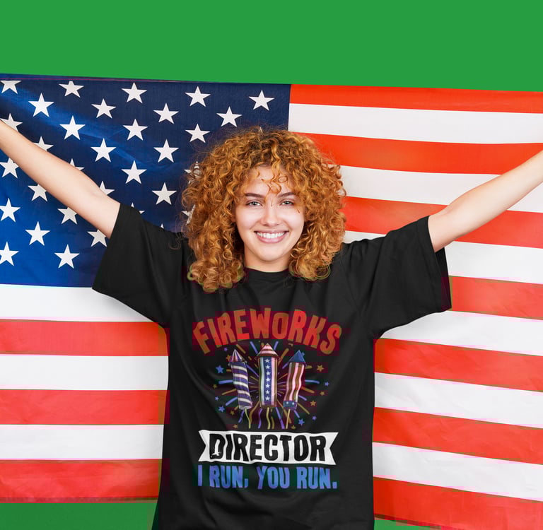 Celebrate Independence Day with a blast of humor in our "Fireworks Director Tee: If I Run, You Run!" This funny 4th of July design features a vibrant graphic of fireworks bursting in the sky and the cheeky text "Fireworks Director: If I Run, You Run." Made from high-quality Gildan 5000 cotton, this shirt ensures comfort and durability, making it perfect for your patriotic festivities. Whether you're the life of the party or just love a good laugh, this tee is sure to light up the night with its fun and witty charm. Get ready to ignite some smiles and laughter this Independence Day!