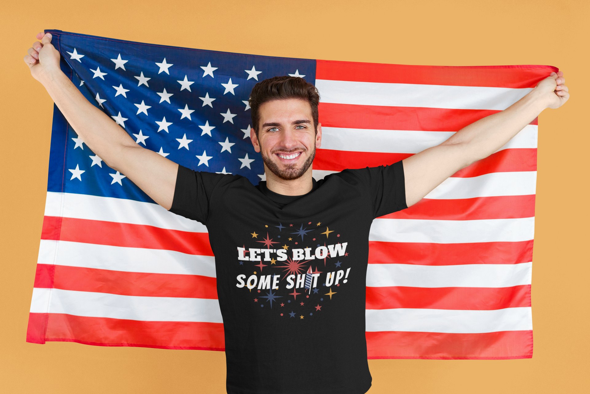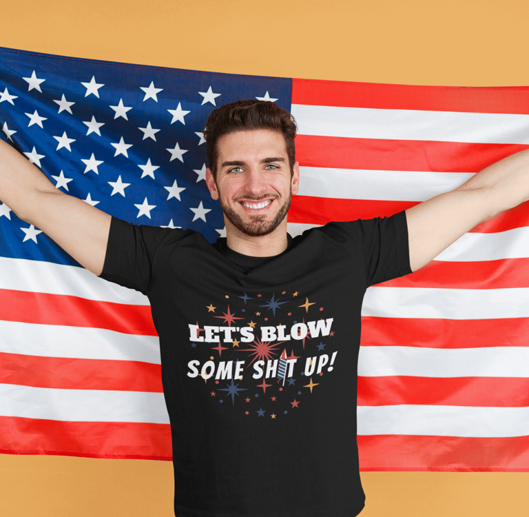 Get ready to ignite the night with our "Let's Blow Some Sht Up" T-shirt! Perfect for celebrating the 4th of July with a bang, this shirt features vibrant firework graphics and playful text where the "i" in "sht" is cleverly replaced by a rocket. It’s the ultimate conversation starter for your Independence Day festivities.