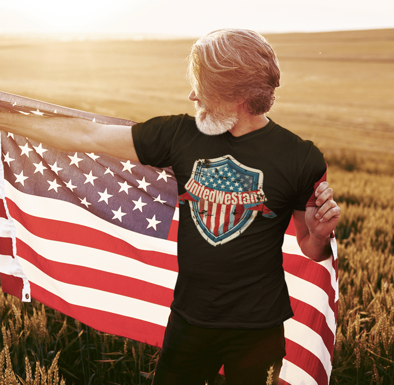 Stand tall, stand proud, and show the world that we are united with this striking patriotic tee. Ideal for parades, barbecues, fireworks, or just everyday wear, this shirt is a must-have for any proud American. Order yours today and wear your pride on your sleeve!